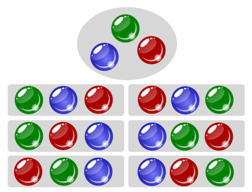 For example, if we have three balls, one green, one blue, and one red, there are six ways to line them up: