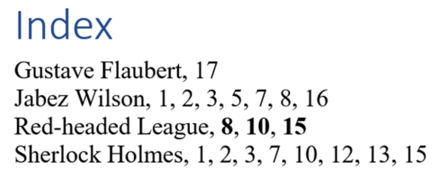 To avoid having to read all documents every time a word is requested, we will build a document index: An index is a data structure that indicates in which document each word appears. The idea is similar to the indexes at the end of books that tell on which pages each important term appears; see the figure on the right.
