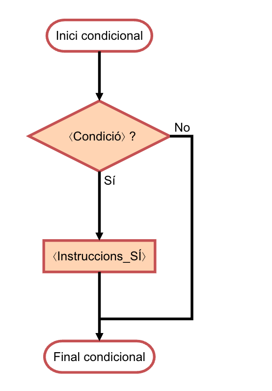 El diagrama de flux següent mostra el funcionament de la instrució condicional sense else