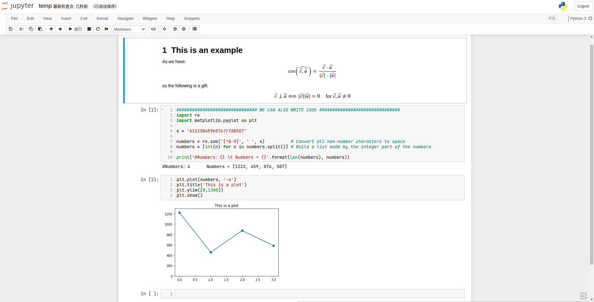 It is basically a browser-based (so you can open it as a web) programming environment (you can imagine it as a simple editor with some extra functions) containing an ordered list of cells. These cells can contain code, text, mathematical expressions, media (videos or plots):