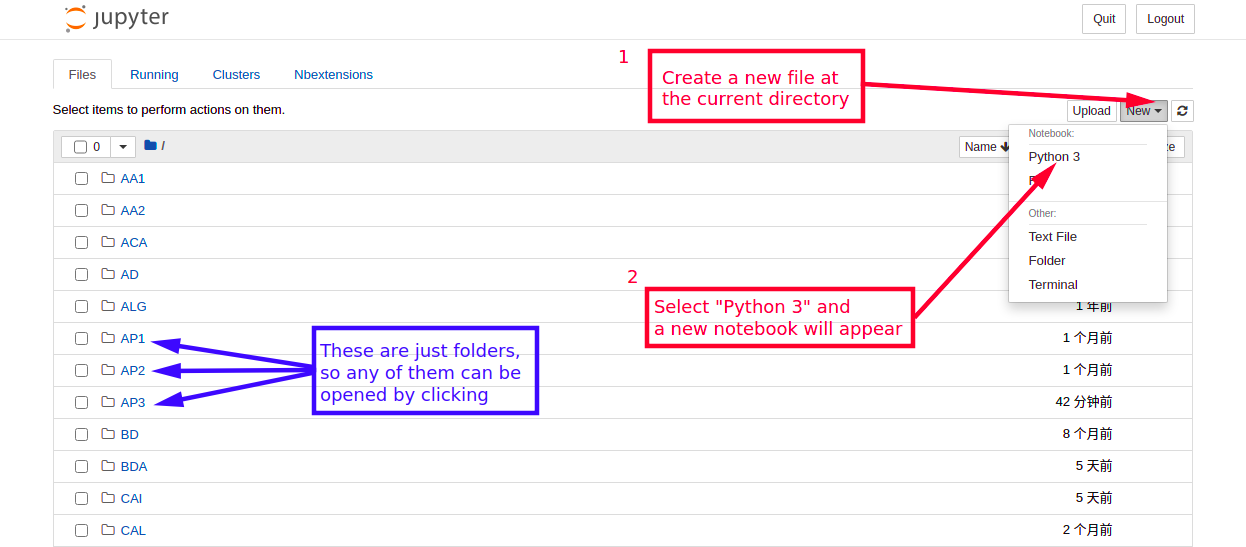 and after waiting for a while (< 1 min), it will automatically open a browser window. You can explore it and create new files.